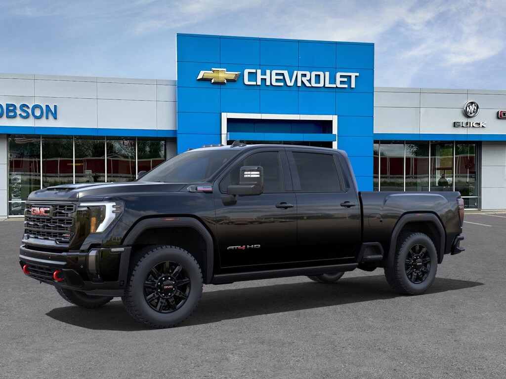 Onyx Black 2025 GMC Sierra 2500HD AT4 4WD 10-Speed Automatic Duramax 6.6L V8 Turbodiesel 10-Speed Automatic, 4WD, Jet Black With Kalahari Accents Leather.