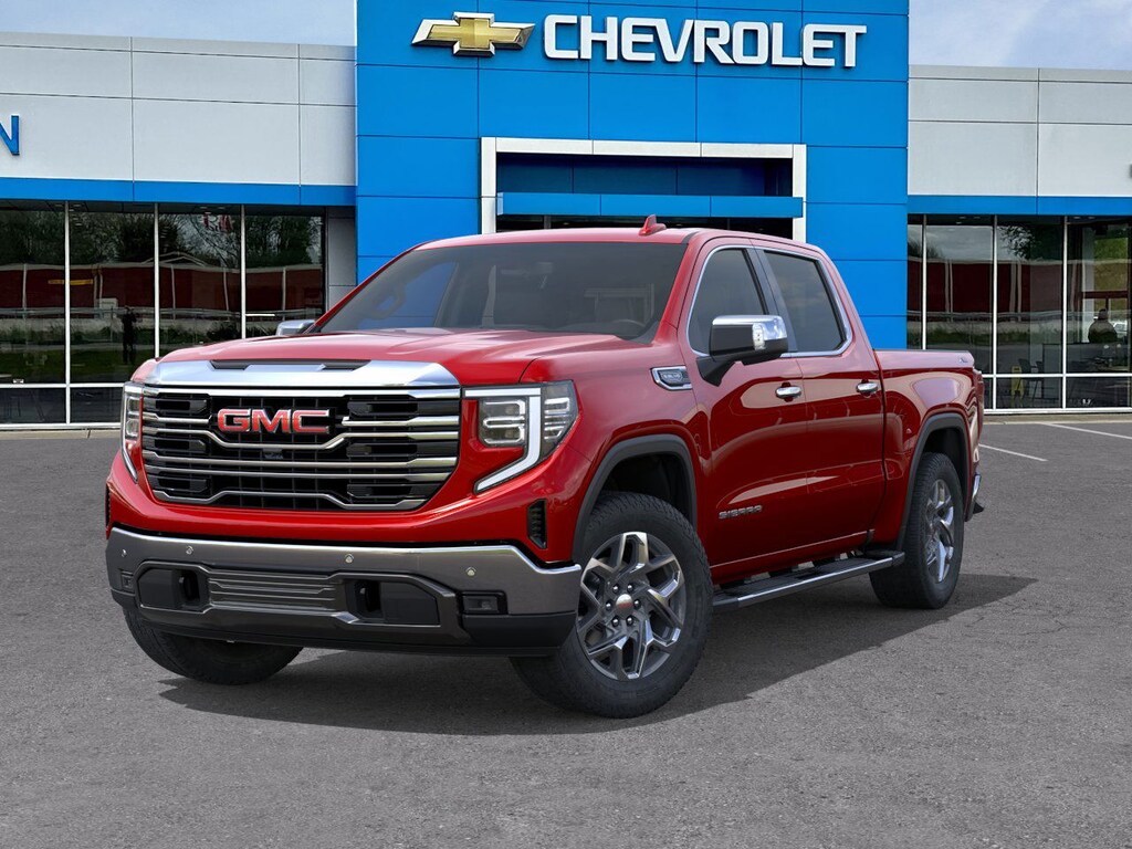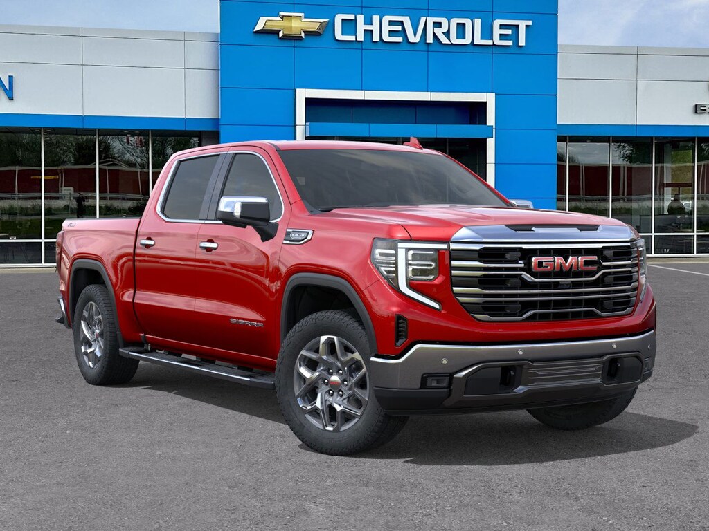 Volcanic Red Tintcoat 2026 GMC Sierra 1500 SLT 4WD 10-Speed Automatic EcoTec3 5.3L V8 10-Speed Automatic, 4WD, Jet Black Leather.