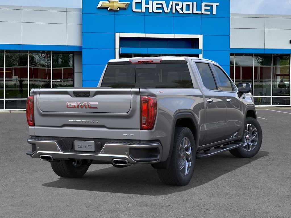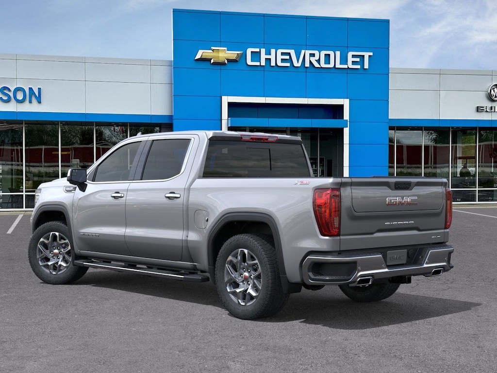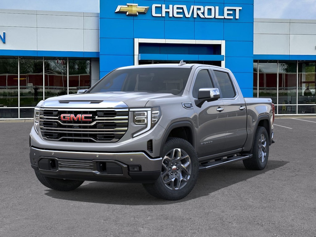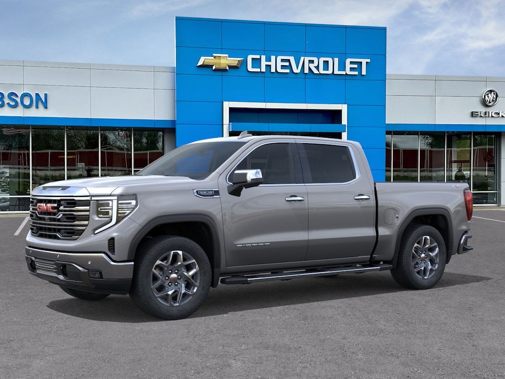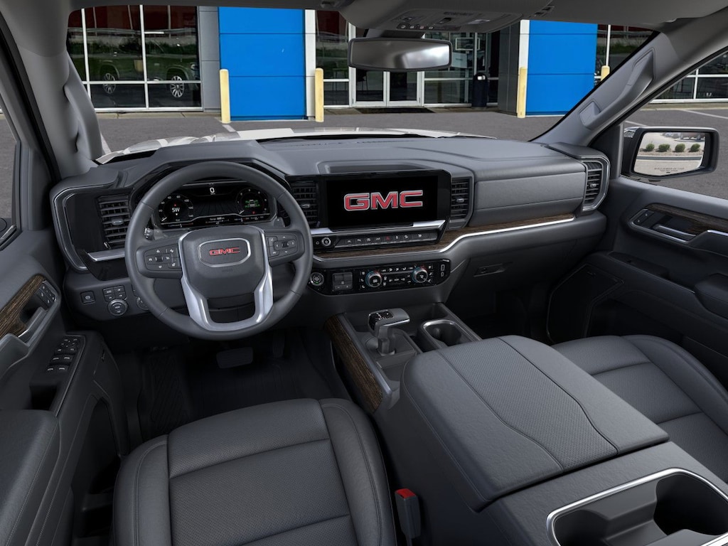 Sterling Metallic 2026 GMC Sierra 1500 SLT 4WD 10-Speed Automatic EcoTec3 5.3L V8 10-Speed Automatic, 4WD, Jet Black Leather.