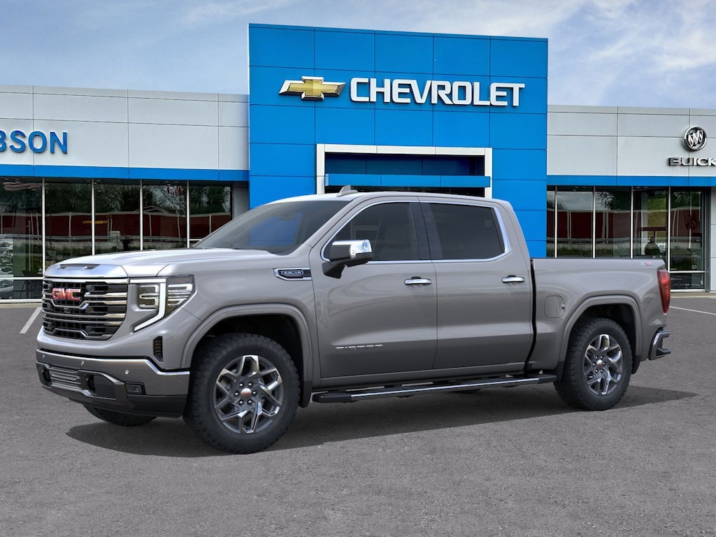 Sterling Metallic 2026 GMC Sierra 1500 SLT 4WD 10-Speed Automatic EcoTec3 5.3L V8 10-Speed Automatic, 4WD, Jet Black Leather.