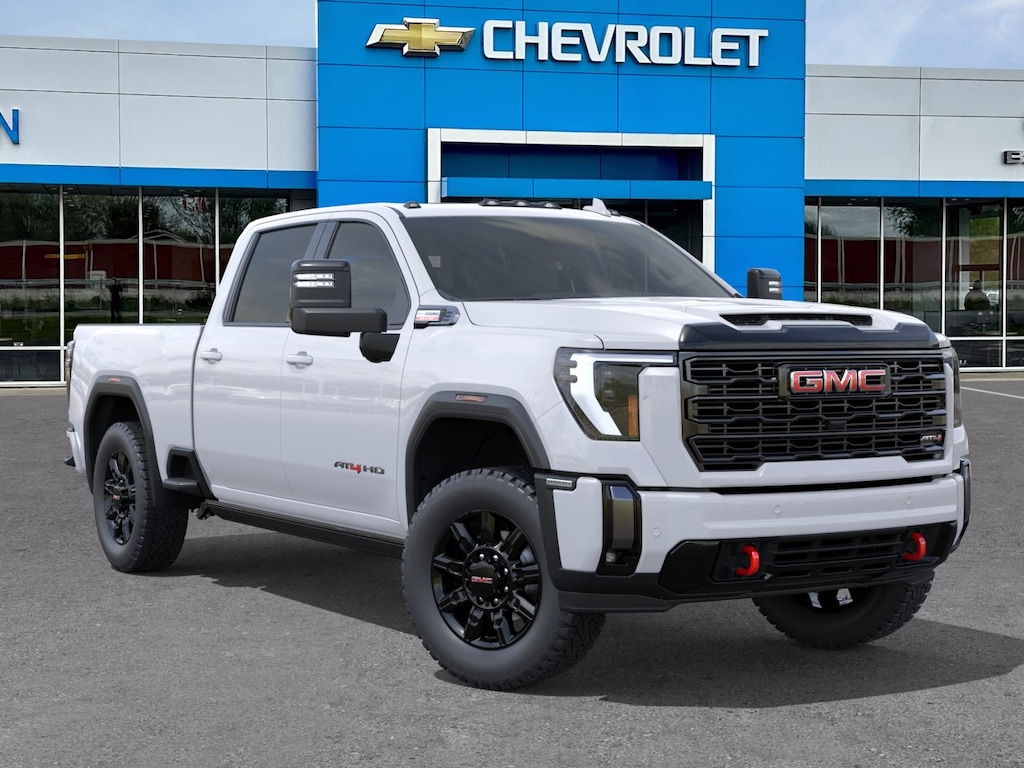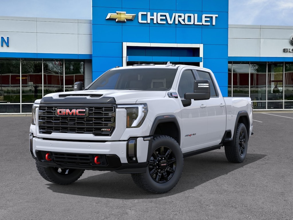 Summit White 2026 GMC Sierra 2500HD AT4 4WD 10-Speed Automatic Duramax 6.6L V8 Turbodiesel 10-Speed Automatic, 4WD, Jet Black With Kalahari Accents Leather.