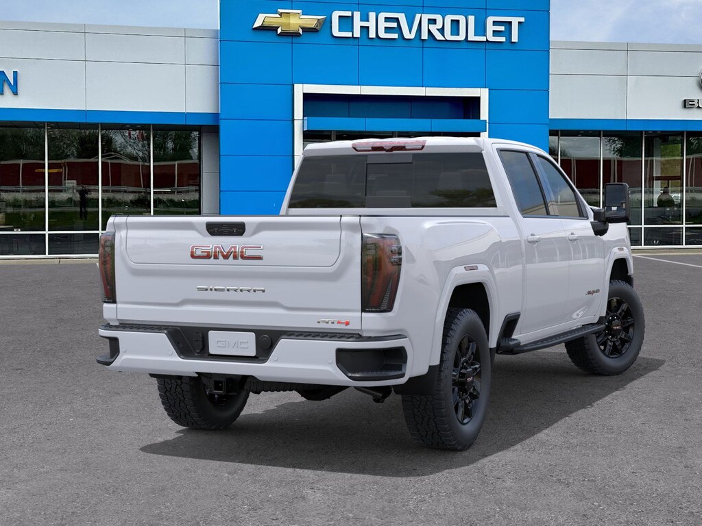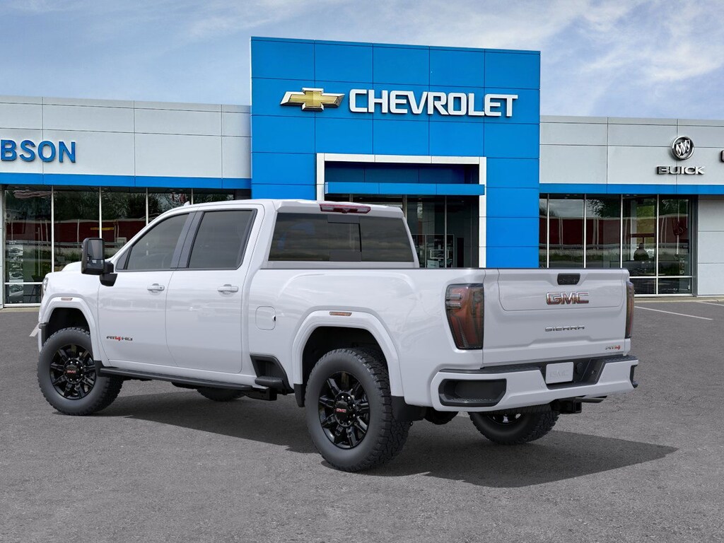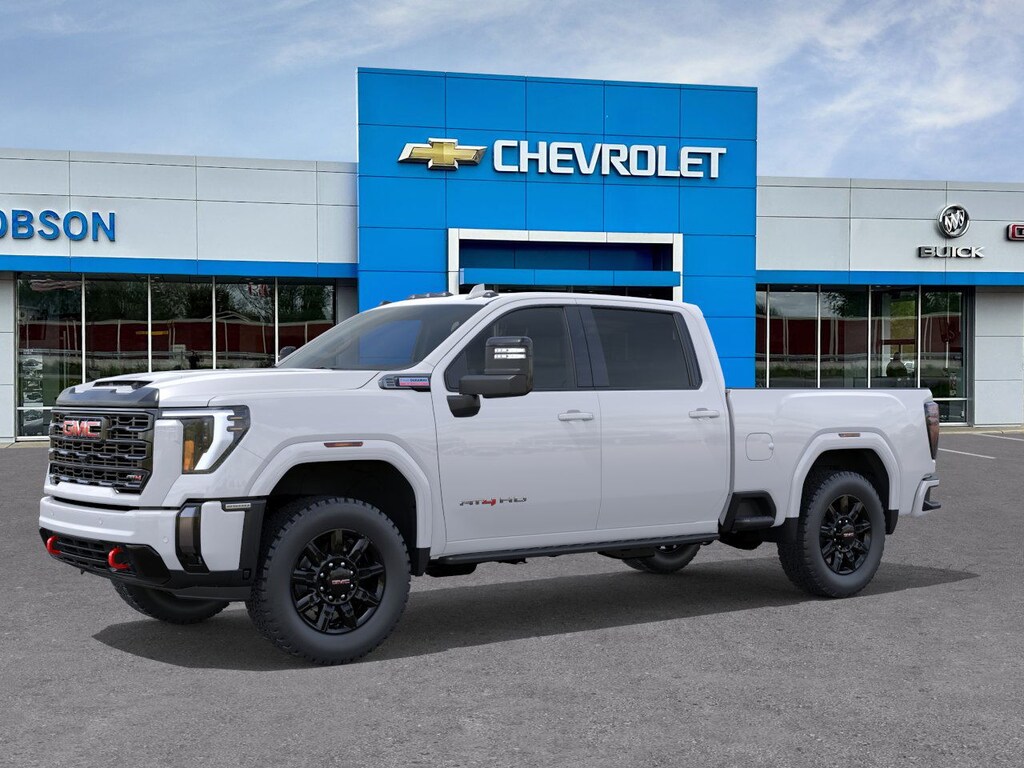 Summit White 2026 GMC Sierra 2500HD AT4 4WD 10-Speed Automatic Duramax 6.6L V8 Turbodiesel 10-Speed Automatic, 4WD, Jet Black With Kalahari Accents Leather.