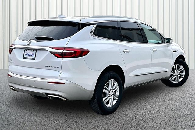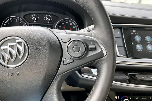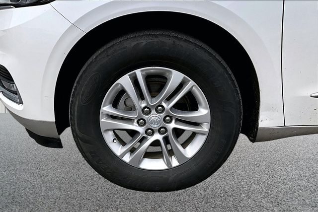 On the exterior, the Enclave stands out with 18-inch aluminum wheels, LED daytime running lamps, chrome accents, and sleek Buick styling that gives this SUV an upscale and modern presence.