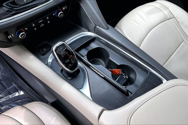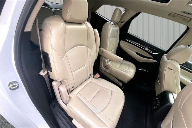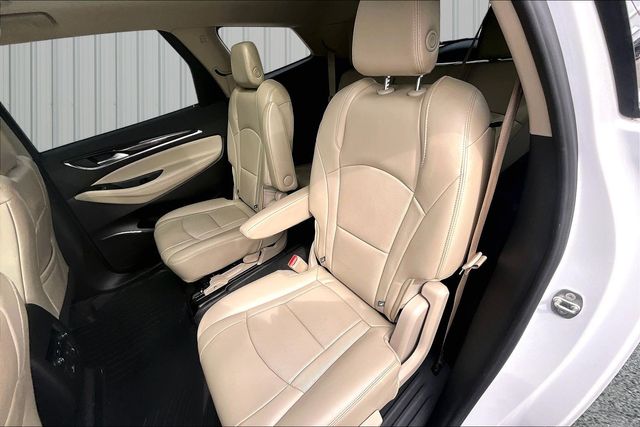 Inside, the Enclave Essence surrounds passengers with premium materials and thoughtful design. The cabin features leather-appointed seating, heated front seats, a power-adjustable driver seat with memory, and tri-zone automatic climate control to keep everyone comfortable. The spacious interior includes second-row captains chairs and a third-row split-folding seat, providing flexible seating for up to seven passengers or additional cargo when needed.