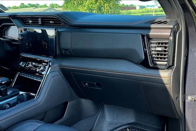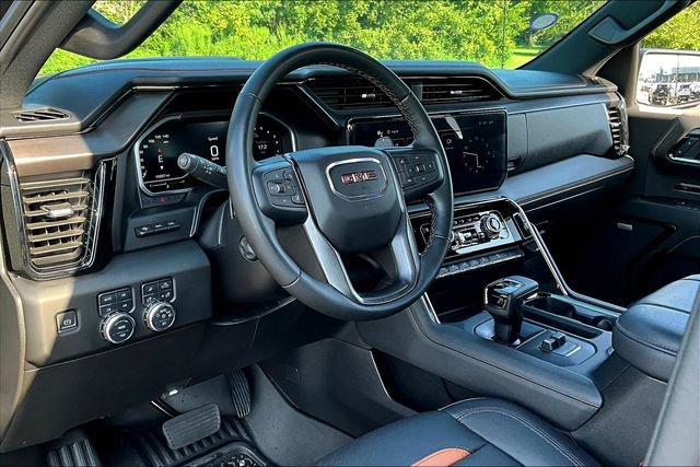 The 2024 GMC Sierra 1500 AT4 6.2L V8 is a powerhouse that seamlessly blends rugged off-road capability with refined luxury. Equipped with a 6.2-liter EcoTec3 V8 engine delivering 420 horsepower and 460 lb-ft of torque, it offers exhilarating acceleration and impressive towing capacity .Designed for adventure, the AT4 trim features a factory-installed 2-inch lift, off-road suspension, Rancho monotube shocks, and a 2-speed AutoTrac transfer case . This setup ensures exceptional off-road performance, whether you're navigating rugged trails or tackling challenging terrains. Inside, the Sierra 1500 AT4 6.2L V8 offers a premium experience with features like a 13.4-inch customizable touchscreen, a 12.3-inch Driver Information Center, and available leather-appointed seating. The optional 15-inch multicolor Head-Up Display and Rear Camera Mirror enhance visibility and convenience .