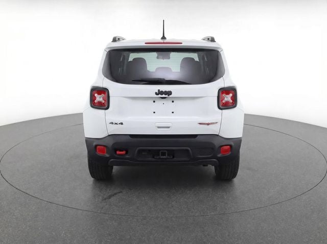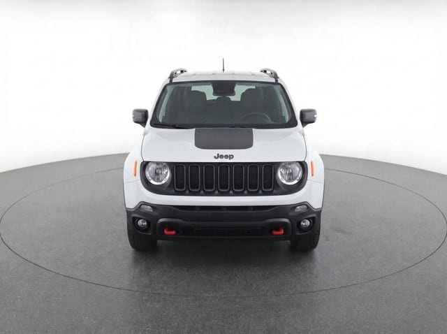 Finished in classic Alpine White Clear-Coat, the Renegade Trailhawk stands out with aggressive styling, 17-inch black diamond-cut wheels, and signature Jeep design elements.